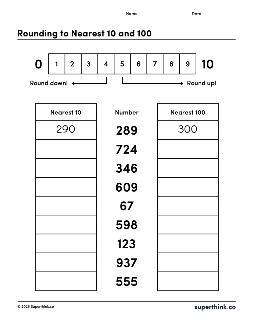 Two columns: One for rounding to the nearest 10 and one for 100